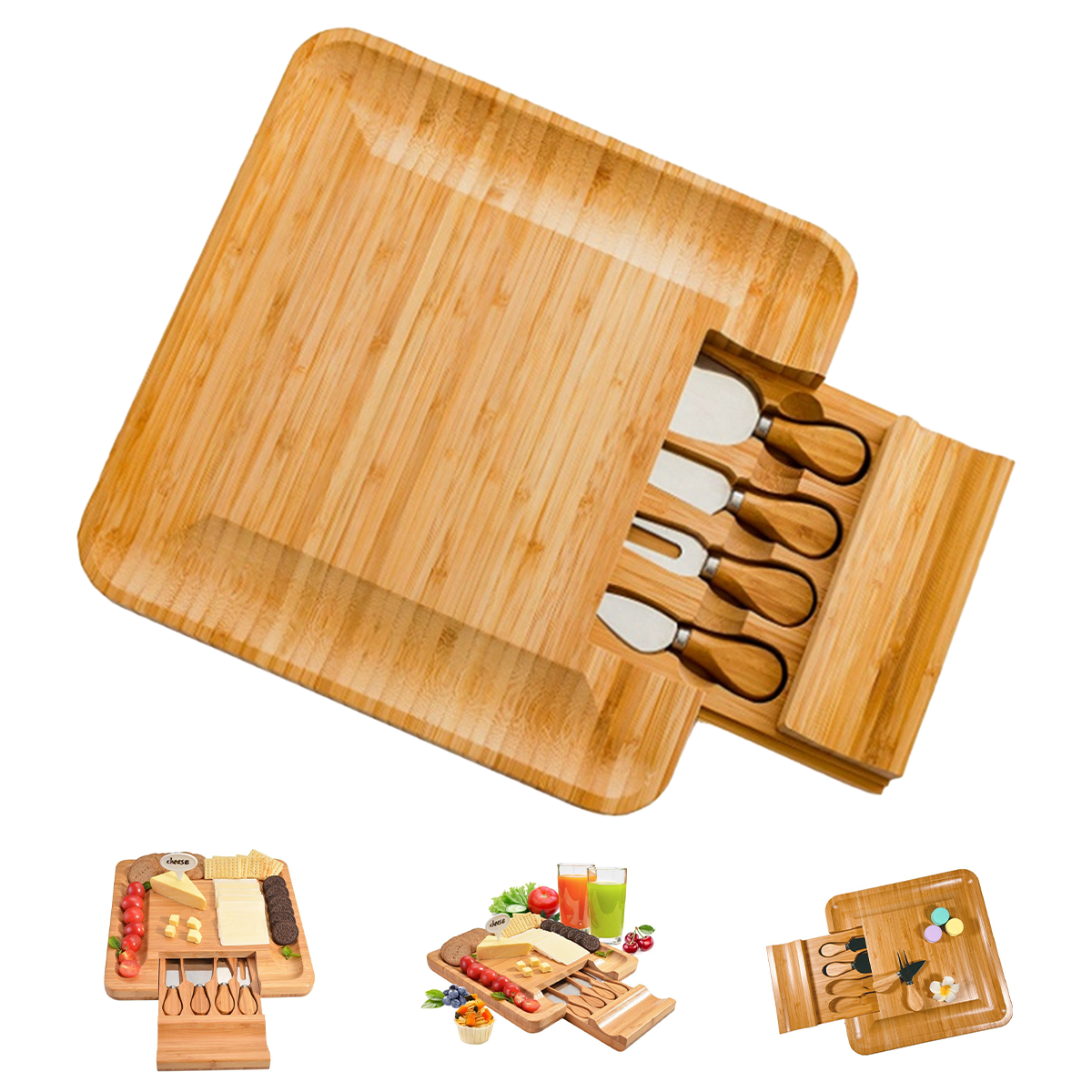 Bamboo and Slate Cheese Board Set