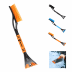 Introducing snow brush and ice scraper! Safely brush off snow and scrape away ice without damaging your windshield. With integrated knuckles, it breaks up ice for removal. Ideal for clearing snow from your windshield, roof, doors, hood, and side mirrors. Made from a high-strength ABS shaft, PC bristles, and EVA cotton handle, it can withstand heavy snowstorms and freezing temperatures as low as -40F.