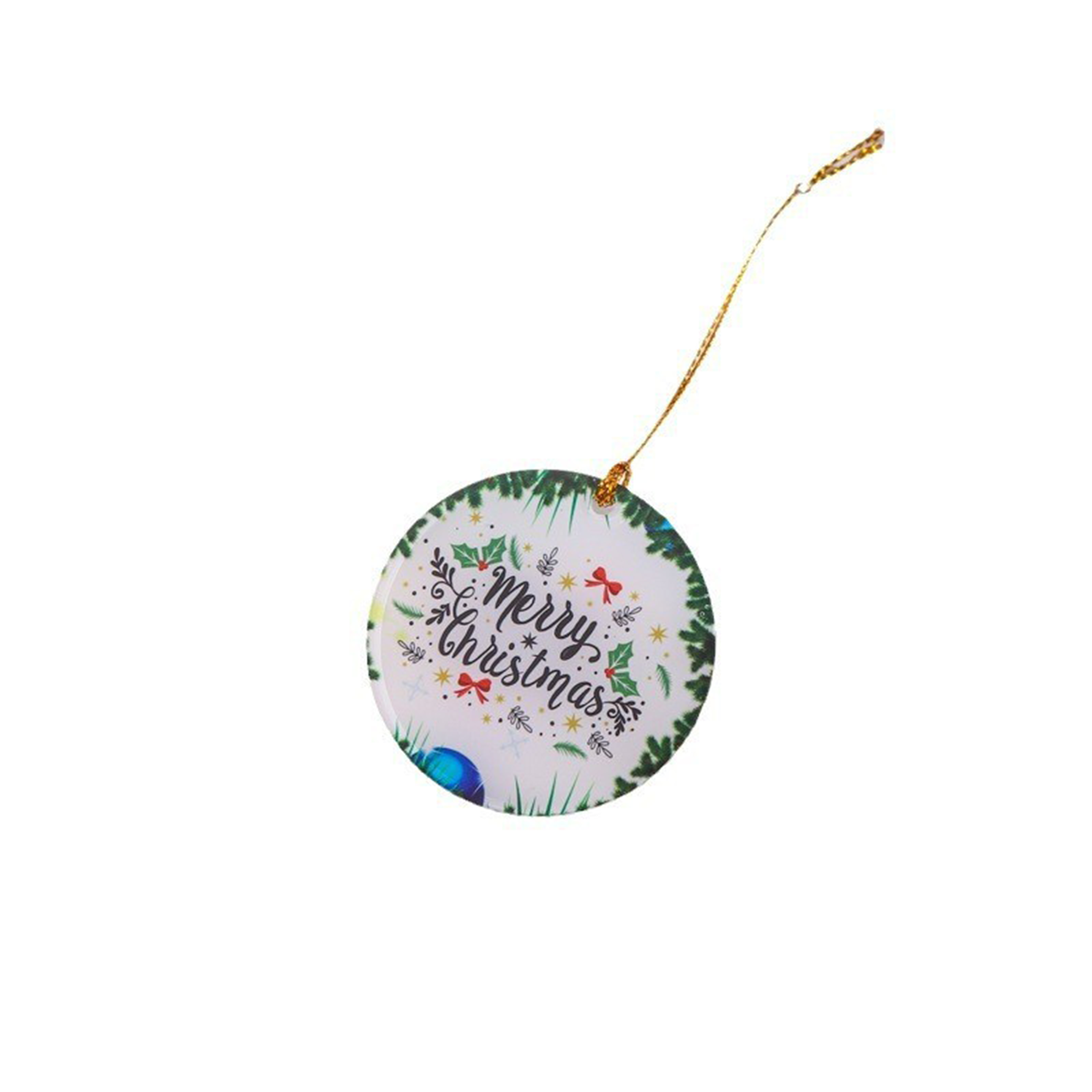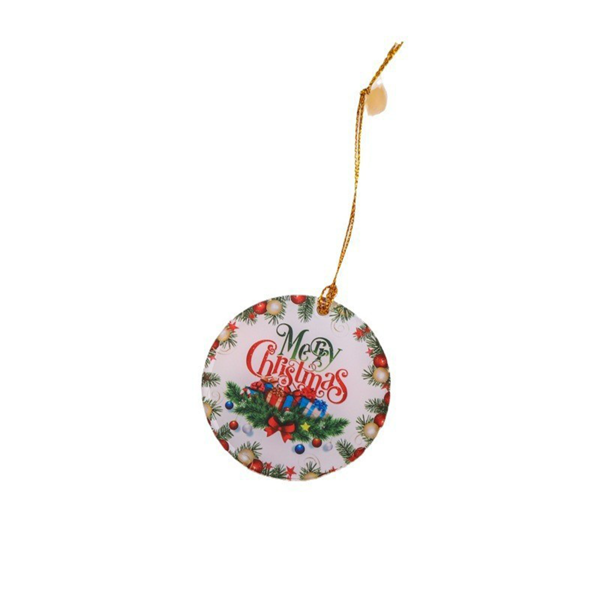 Add a touch of elegance to your holiday decorations with this acrylic ornament. With a diameter of less than 2 inches, it fits perfectly on any Christmas tree. Its gold hang cord adds a subtle hint of luxury.