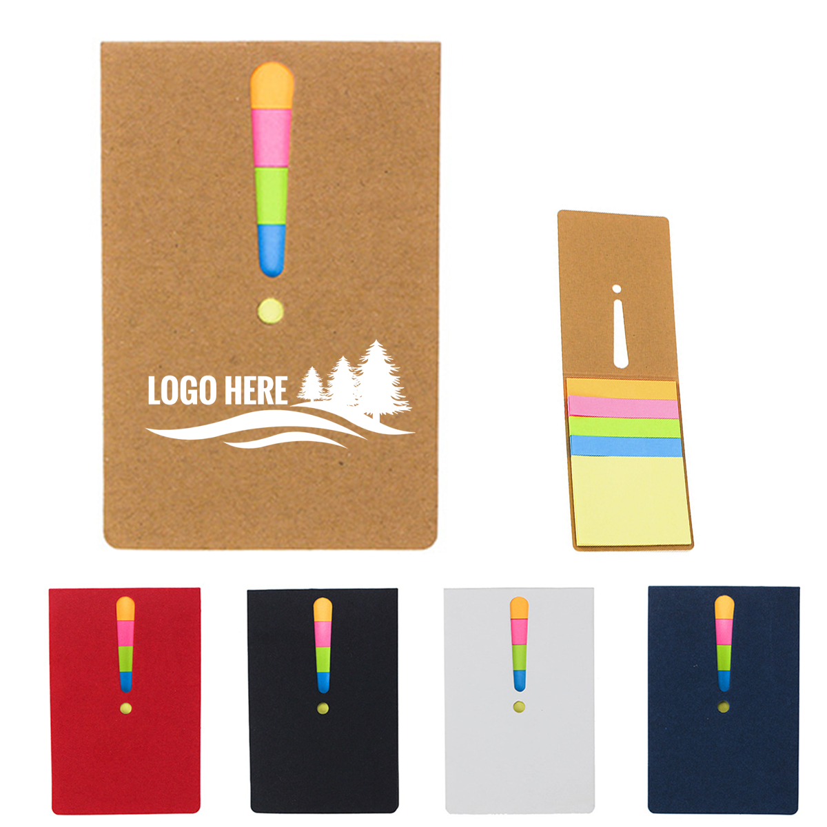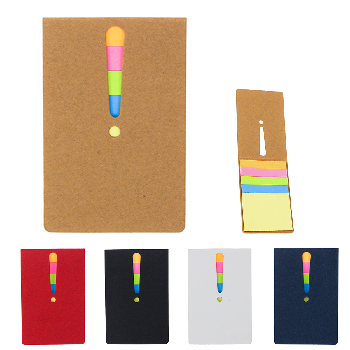 This handy Exclamation Mark Notepad includes 25 sticky notes of various colors. Made with a kraft paper cover, it is perfect for recording personal notes and data. Its pocket-sized design allows for easy portability.