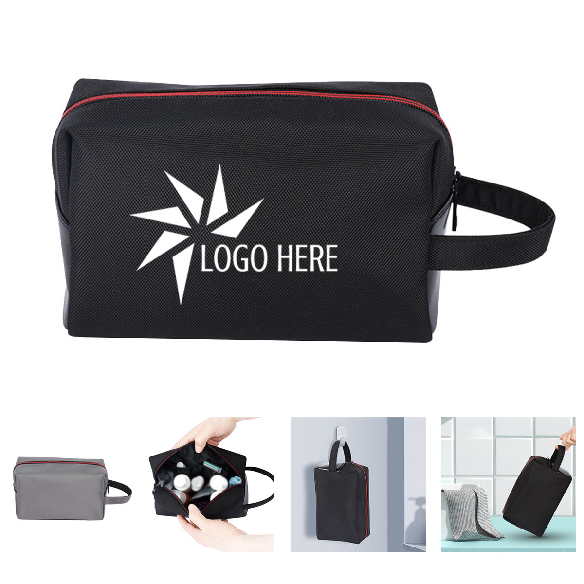 Introducing a trendy makeup bag that allows you to effortlessly connect with customers and supporters. This oxford cosmetic tote offers ample space and a secure zippered closure. It features 1 large zipper pocket, 1 rear zipper pocket, and 2 front pockets to hold all your travel essentials.