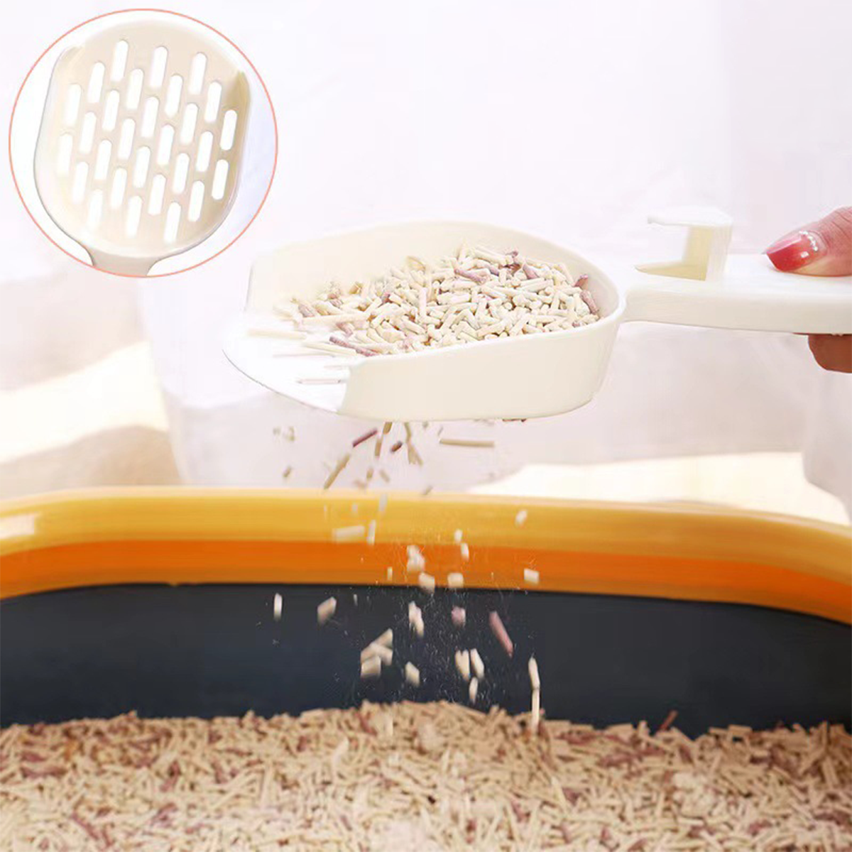 keywords:Waste Removal, Hanging, Grater, Cleaner, Plastic, Sifter, Filtering, Handle, Pet, Kitten