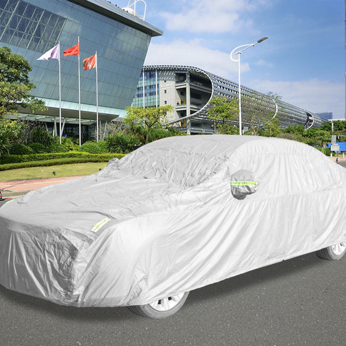 Protect your pickup or SUV from rain, snow, and harsh weather with this durable truck cover. Made of heavy-duty polyester, it provides excellent water resistance and insulation. Designed for a snug fit on various pickup models, it is available in 3 sizes to accommodate most large SUVs. With its durability, weather resistance, and ease of use, this truck cover is the ideal solution for all-weather protection.
