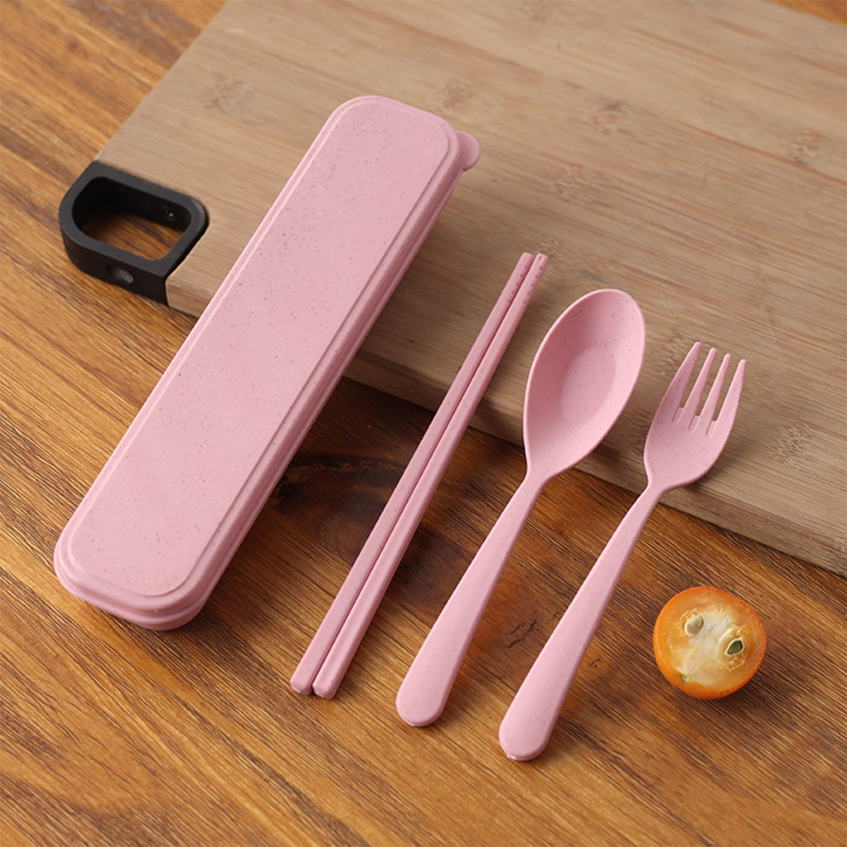 This eco-friendly utensil set is built for portability and convenience! Made from wheat straw polypropylene, this lightweight set includes a fork, spoon, and knife. It's perfect for bringing to the office, school, or on any adventure, making mealtime easy wherever you go.